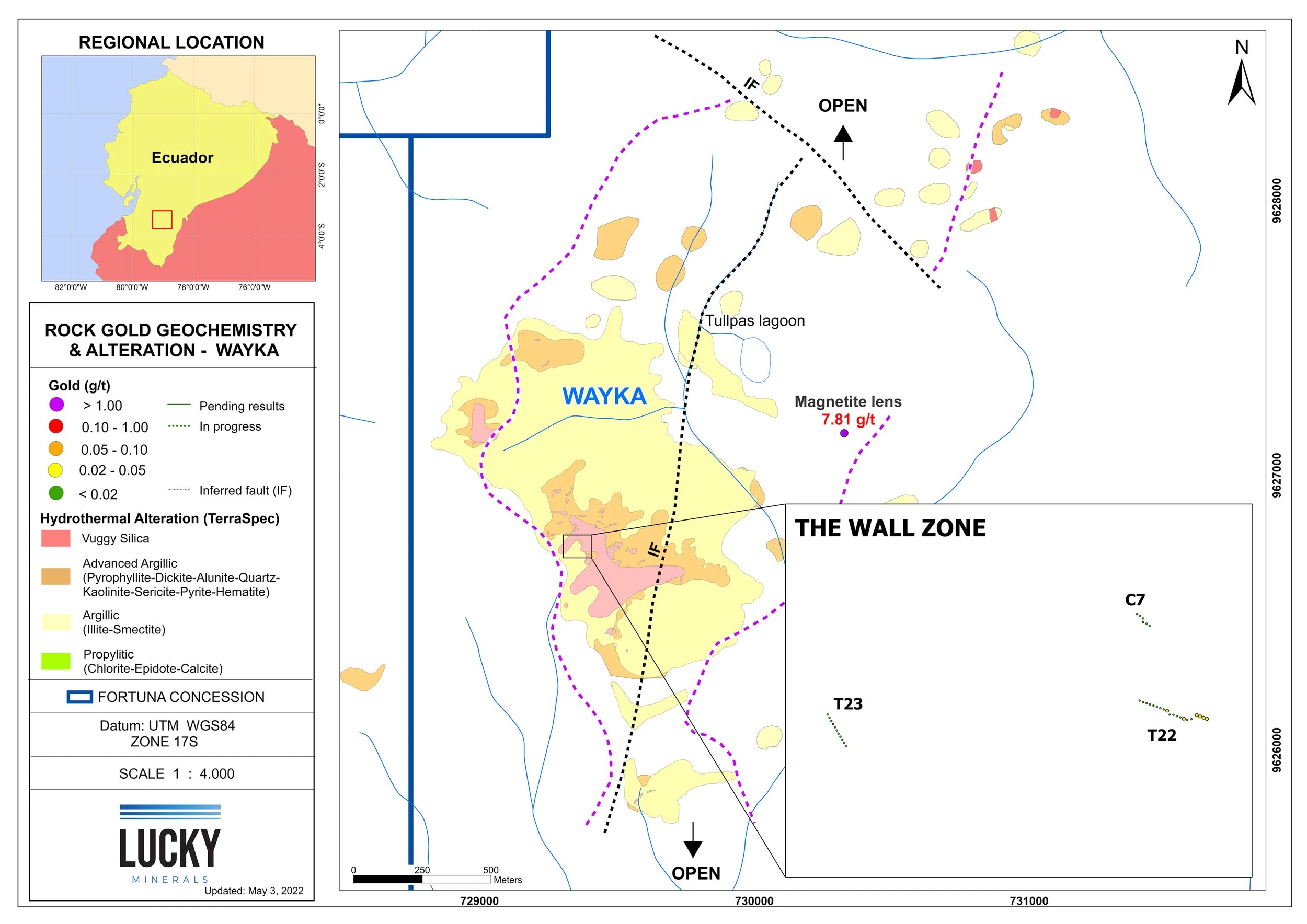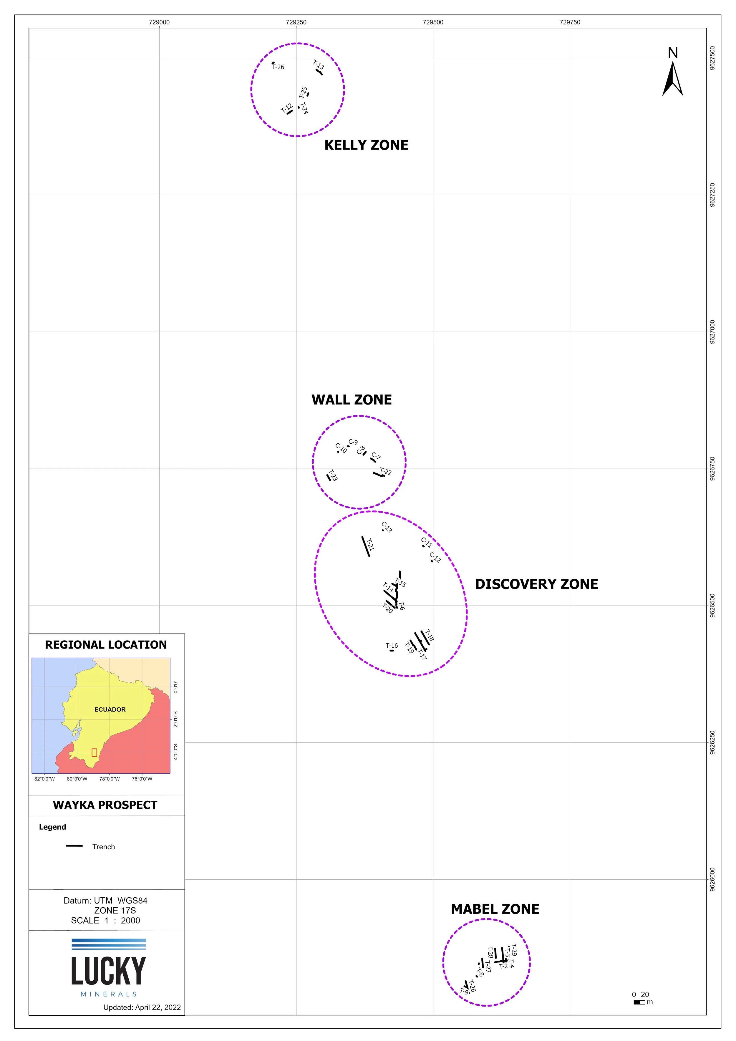 Vancouver, British Columbia, May 10, 2022 – Lucky Minerals Inc. (TSXV: LKY, OTC: LKMNF, FRA: LKY) (“Lucky” or the “Company”) is pleased to announce it continues with the trenching program for the upcoming drill program at the Wayka epithermal gold discovery at its 100% owned Fortuna Property (“Fortuna”) in southern Ecuador.